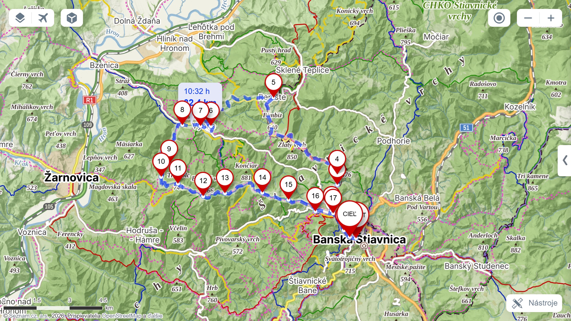 - celková dĺžka trasy 32,4 km.