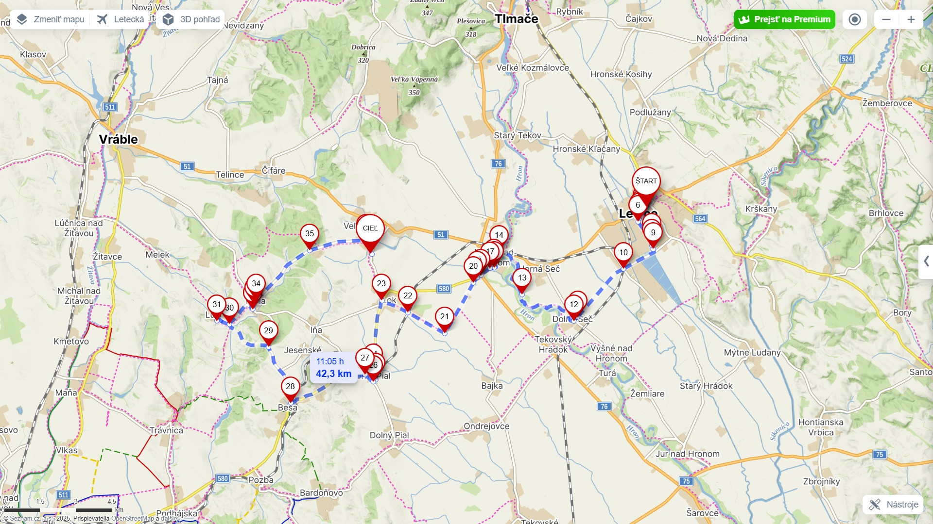 - dĺžka trasy: 42,5 km