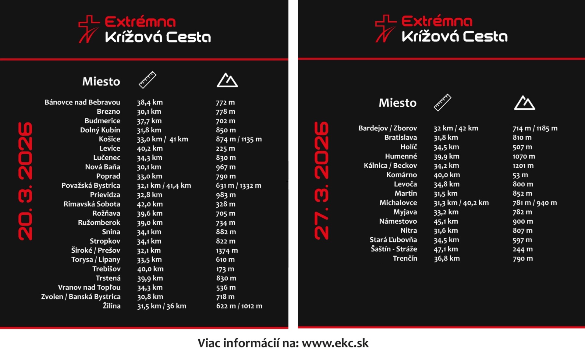 REGISTRÁCIA na Extrémnu Krížovú Cestu začína stále na Popolcovú stredu a končí minimálne 2 dni pred každou EKC. Po tomto termíne už nebude možné absolvovať EKC v daný deň.