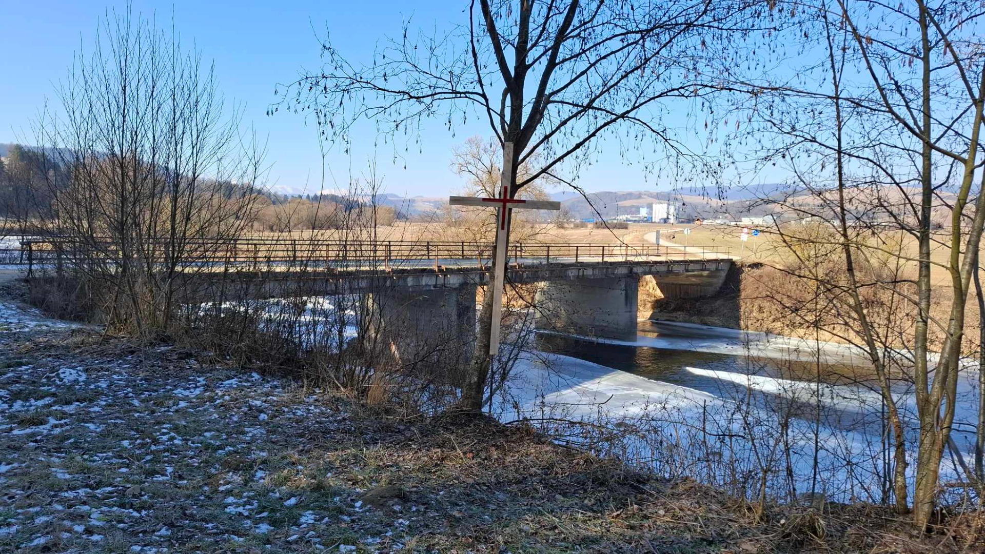 Rázcestník za riekou Poprad