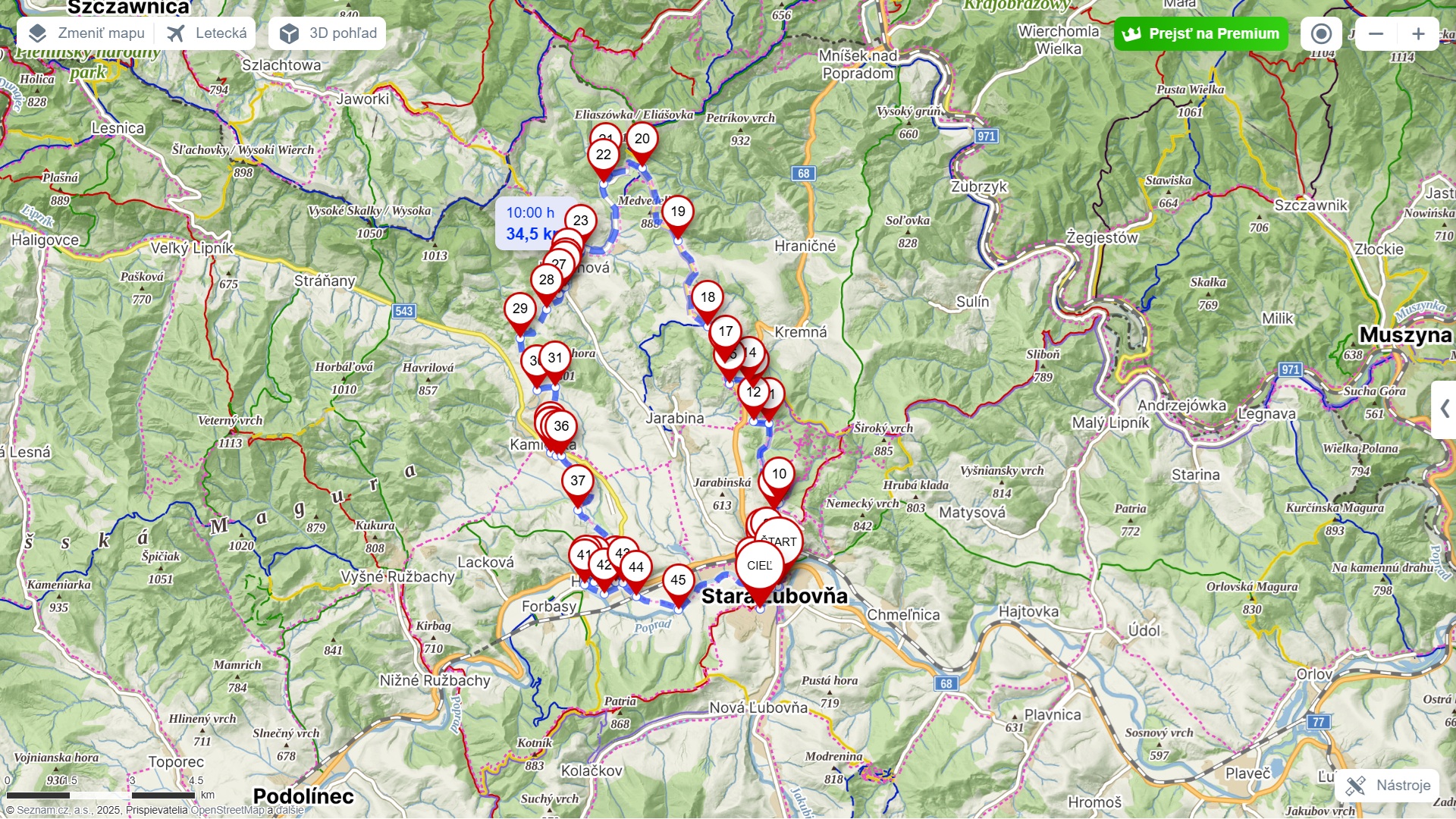 - celková dĺžka trasy 34,5 km.