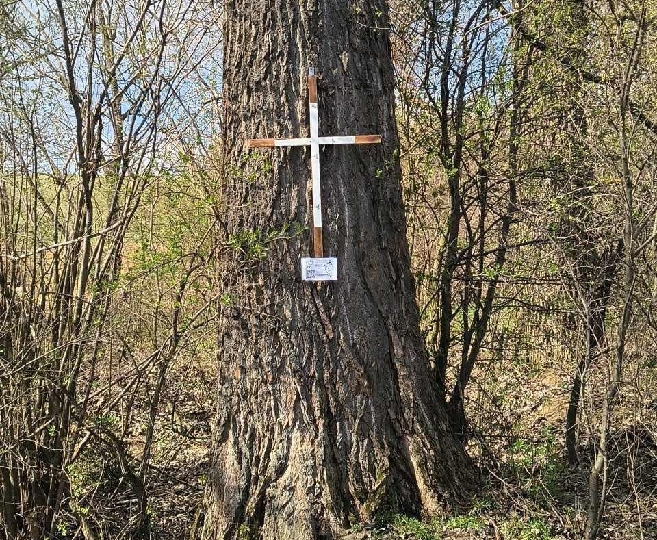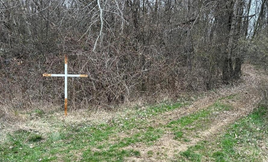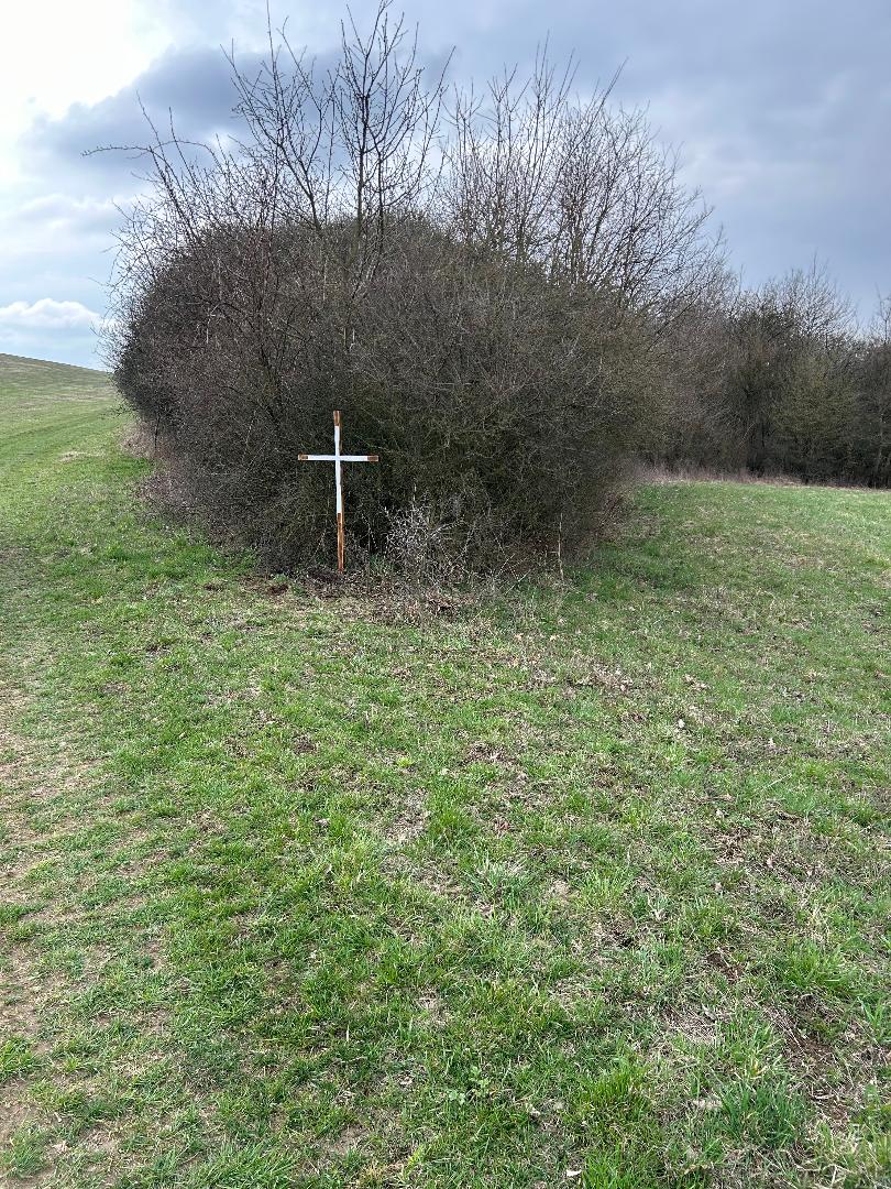 Drevený kríž pri hojdačke